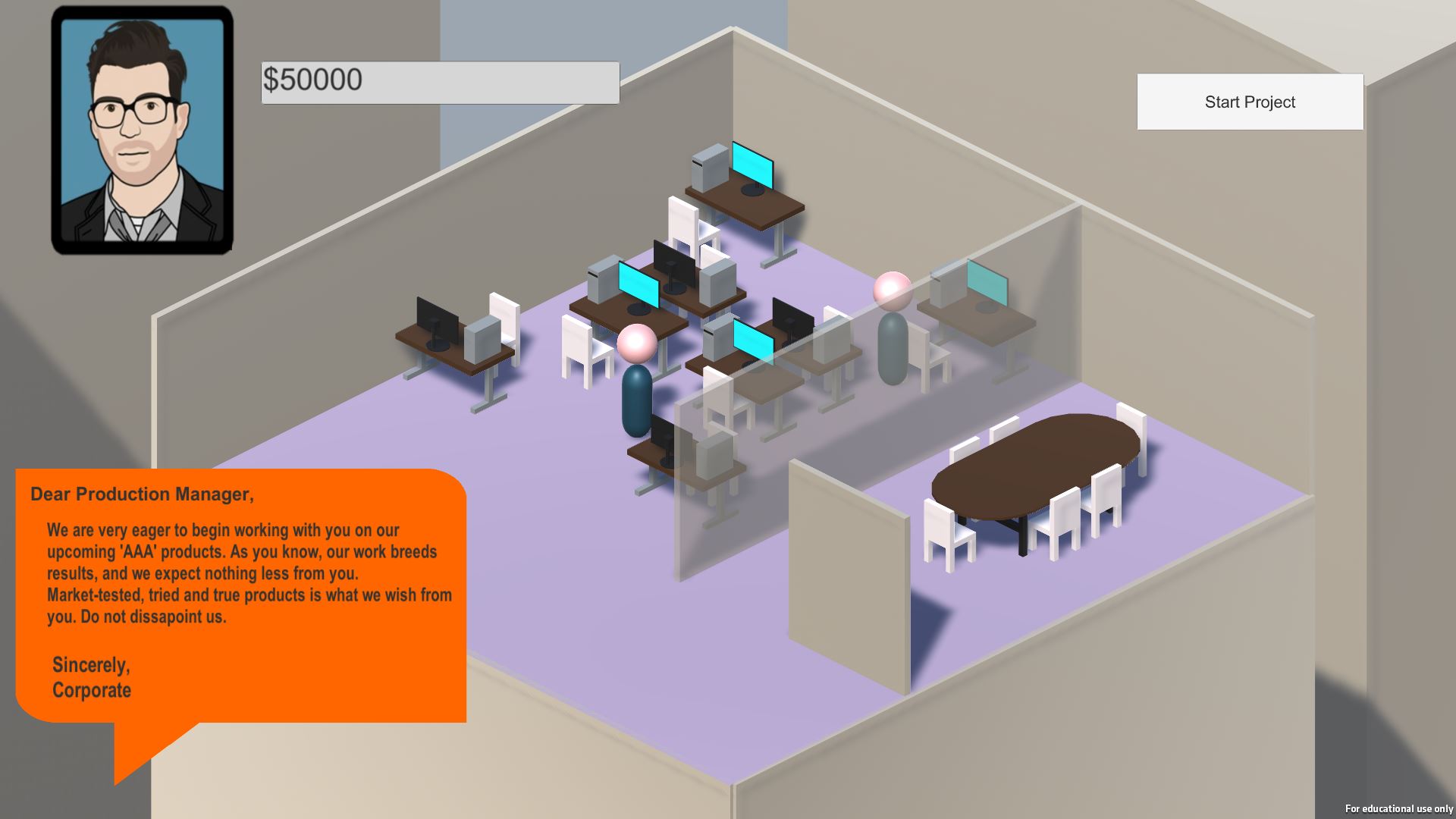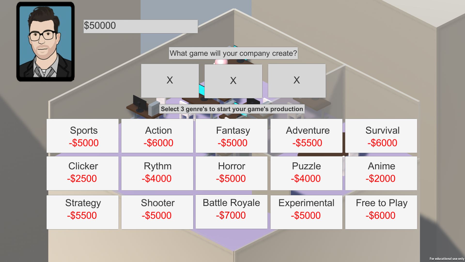 The game will give you a range of genres to choose from in which you are to decide which will make the most amount of money from each project